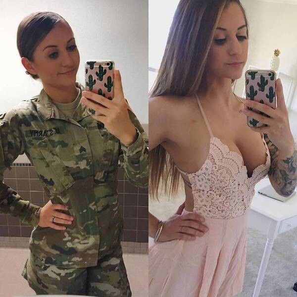 Девушки, чьи фигуры спрятаны под униформой, в свободное от службы или работы время тоже любят демонстрировать свои женские прелести.