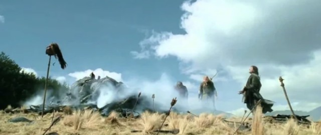В сцене, где Вигго Мортенсен пинает шлем возле кучи орков, он так сильно кричит потому, что в этот момент сломал два пальца на ноге. В фильме использовали именно этот дубль.