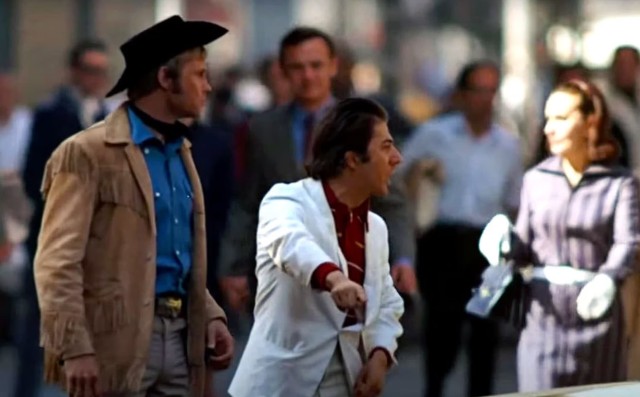 Сцена, в которой Дастин Хоффман кричит: «Я здесь иду!» таксисту, когда с Джоном Войтом переходит дорогу.
