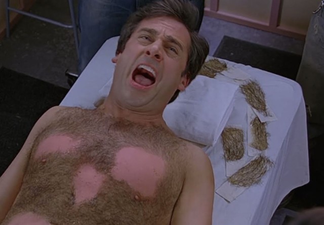 Сцена эпиляции. Говорят, Стив Каррелл заставил намазать его воском. В каждой сцене был только один дубль. Он импровизировал всё, что говорил во время процедуры. А между дублями извинялся перед актрисами, на которых кричал.